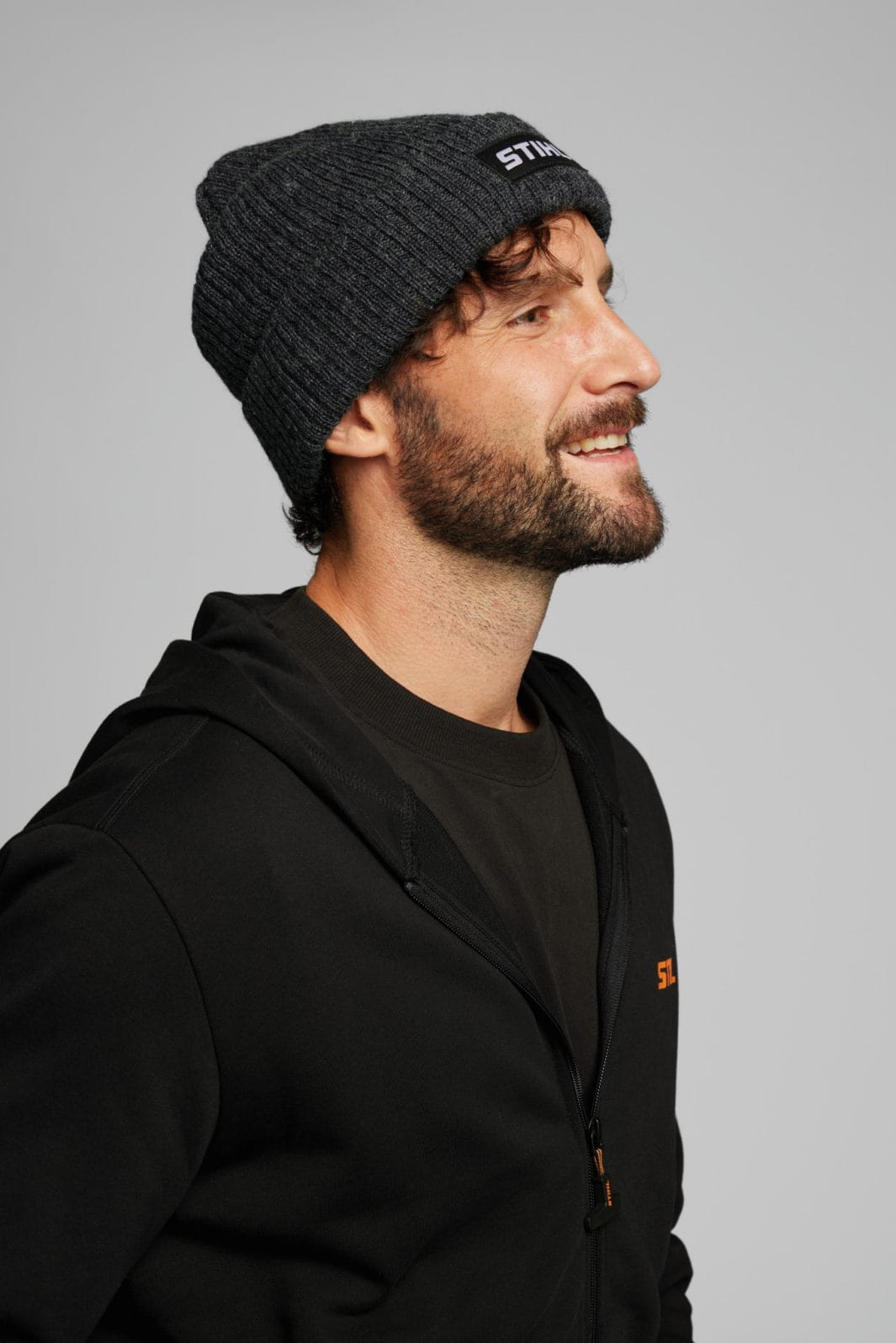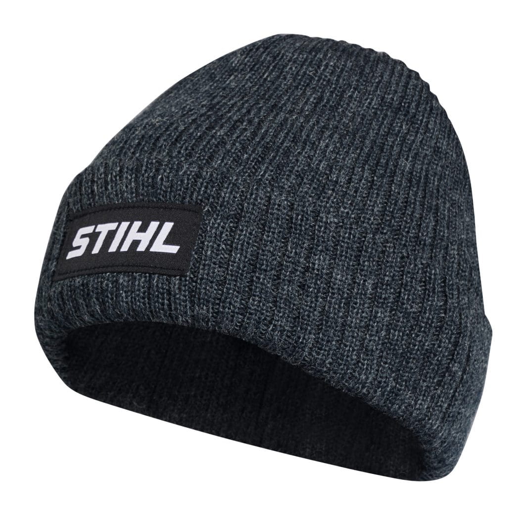Ciepła czapka beanie w kolorze szarym, idealna na chłodne dni. Pasuje na każdą głowę, rozmiar unisex. Czapka z grubej dzianiny z mankietem. Na plakietce białe logo STIHL na czarnym tle.