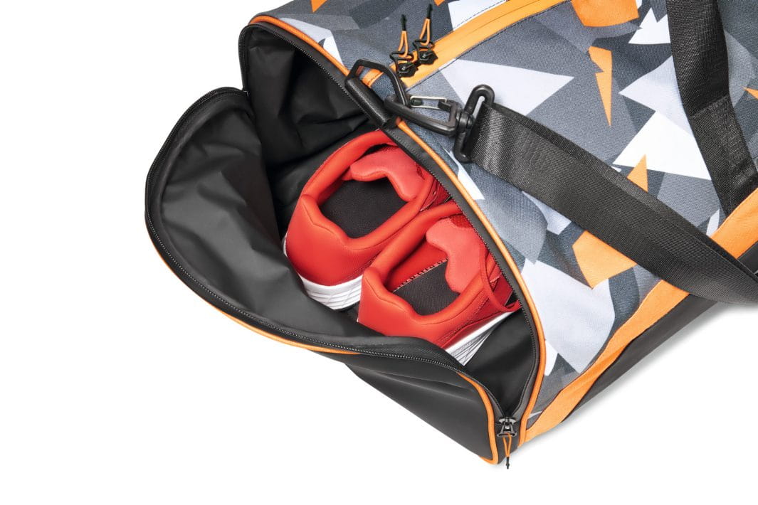 Dla pasjonatów sportu: torba sportowa TIMBERSPORTS® w oryginalnej czarno-biało-pomarańczowej kolorystyce. Torba ma wymiary 65 x 33 x 30 cm i oferuje dużo miejsca na ubrania, ręcznik, buty sportowe i inne przedmioty. Idealna dla sportowców – w oryginalnej stylistyce TIMBERSPORTS®.