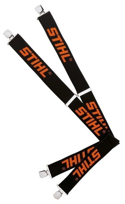 Szelki Stihl w kolorze czarno-pomarańczowym przeznaczone do wszystkich tradycyjnych spodni na guziki lub klipsy