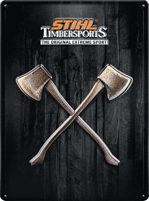 Tablica blaszana Stihl Timbersports ozdobi ścianę każdego prawdziwego fana rąbania drewna. Tablica przedstawia dwie skrzyżowane siekiery - logo zawodów Stihl Timbersports - na ciemnym tle. Dzięki czterem otworom, tablicę można łatwo zawiesić na ścianie naszego garażu lub piwnicy. Charakterystyka: tablica blaszana z logo Stihl Timbersports oraz dwoma skrzyżowanymi siekierami cztery otwory do zamocowania tablicy na ścianie doskonały prezent dla każdego fana marki Stihl