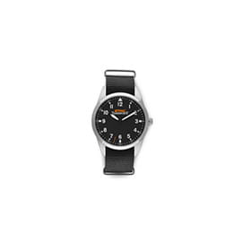 Zegarek na rękę z litej stali nierdzewnej, średnica 40 mm, utwardzane szkło Crystex, nylonowy pasek, wodoszczelność do 10 ATM.